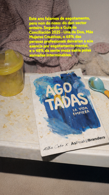 El juego de palabras no es casual. Las postales están “agotadas” porque hablan de un sector que lleva años funcionando al límite: el creativo y publicitario. Un sector que acumula talento, reconocimientos y premios, pero también cansancio, precariedad y una profunda falta de conciliación con la vida.